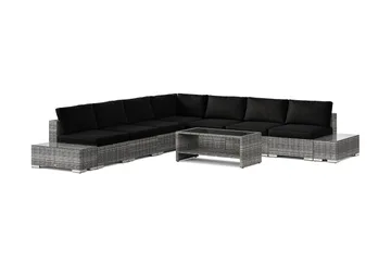 Bahamas utomhus L-soffa höger 8-sits med fåtölj och bord med hylla, Svart