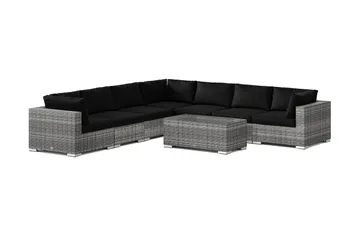 Bahamas utomhus hörnsoffa 5-sits vändbar med öppet avslut och bord med hylla, Svart